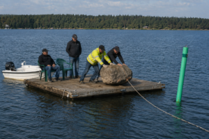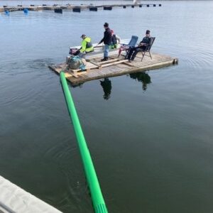 Lennart Herdin, som är klubbens ”sjöpricksansvarige” tog hjälp av Conny, Kjelle och Hasse och for ut i Järsöfjärden och placerade en ny grönprick, sedan den gamla inte klarade vinterns is.